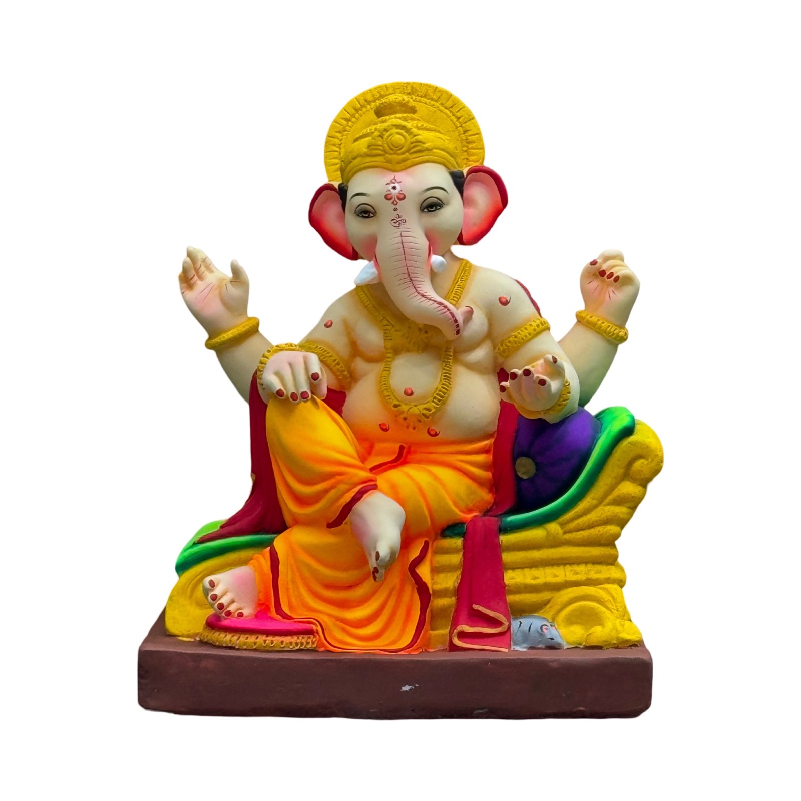 Unlike POP idols that pollute our waters, our traditional Shadu Mati idols are painted with safe, water-based colours. They are designed for easy home immersion, dissolving naturally within 45 minutes to 4 hours, ensuring zero harm to marine life.
