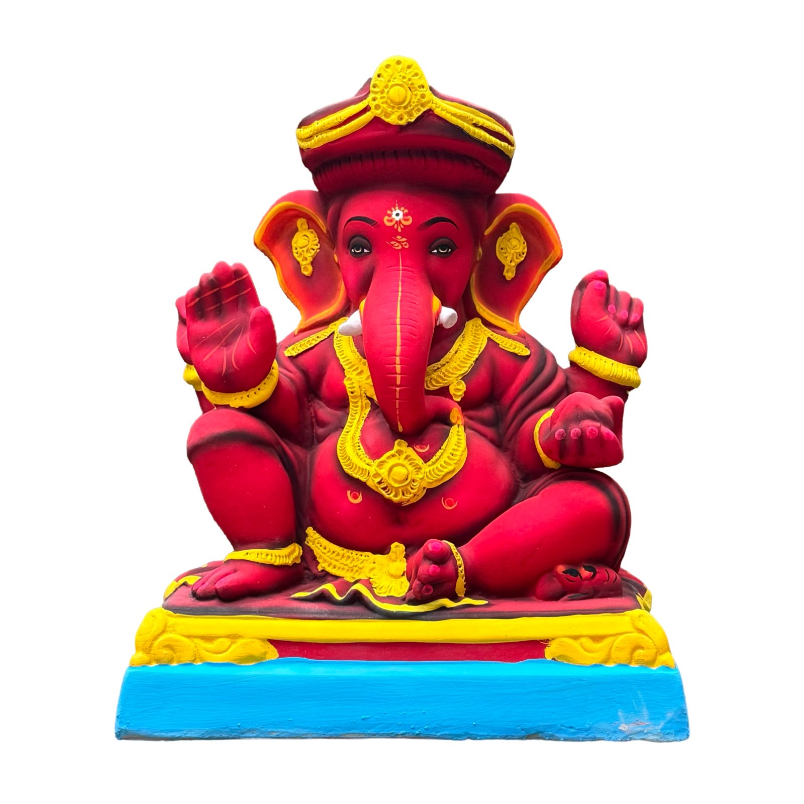 Unlike POP idols that pollute our waters, our traditional Shadu Mati idols are painted with safe, water-based colours. They are designed for easy home immersion, dissolving naturally within 45 minutes to 4 hours, ensuring zero harm to marine life.