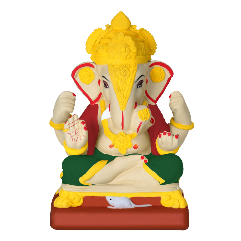 Made from 100% natural Shadu Mati (clay) and coloured with safe, water-based colours, our idols dissolve naturally in water within 45 minutes to 4 hours, making them safe for marine life and the environment.